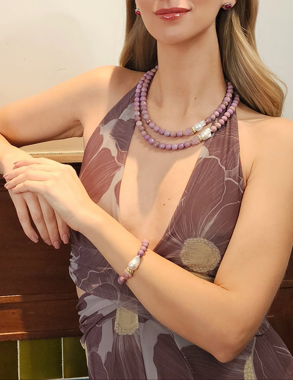 Sugilite Gemstone With Baroque Pearl And Raspberry Bracelet RB012