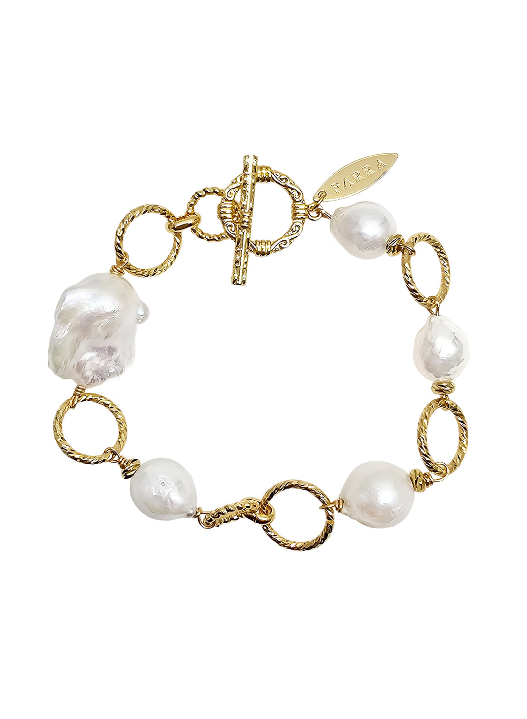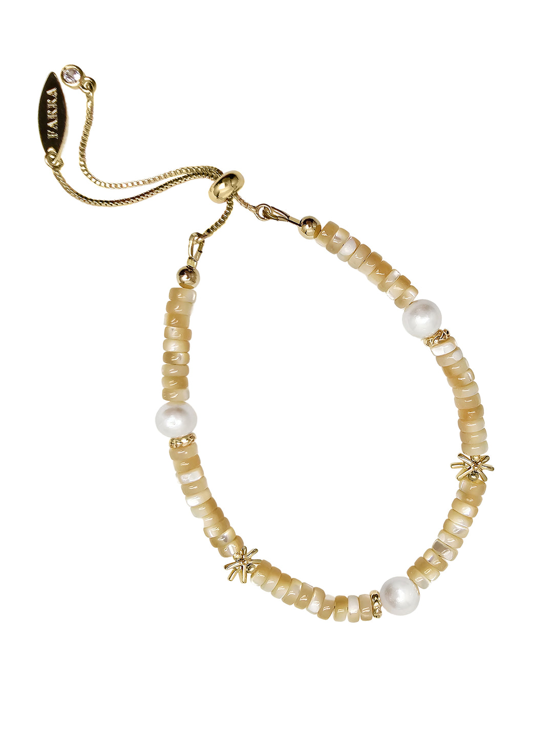 Beige Shell With Freshwater Pearl Slider Bracelet RB021