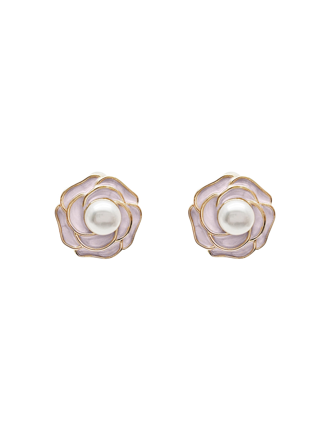 Enamel Flower Stud Earrings With Freshwater Pearl RE021