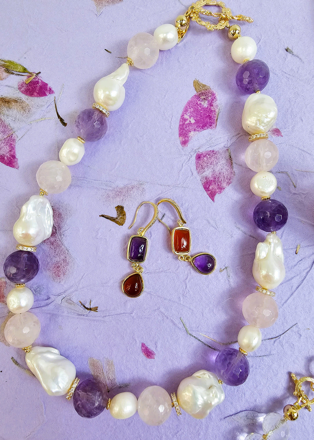 Crafted for comfort and style, the clip-on design ensures easy wear for everyone, regardless of whether you have pierced ears. The gemstones are set in a chic gold-tone finish, enhancing their natural beauty while adding a touch of sophistication. Red Agate is known for its grounding properties, while Amethyst is celebrated for its calming energy, making these earrings not only fashionable but also meaningful.