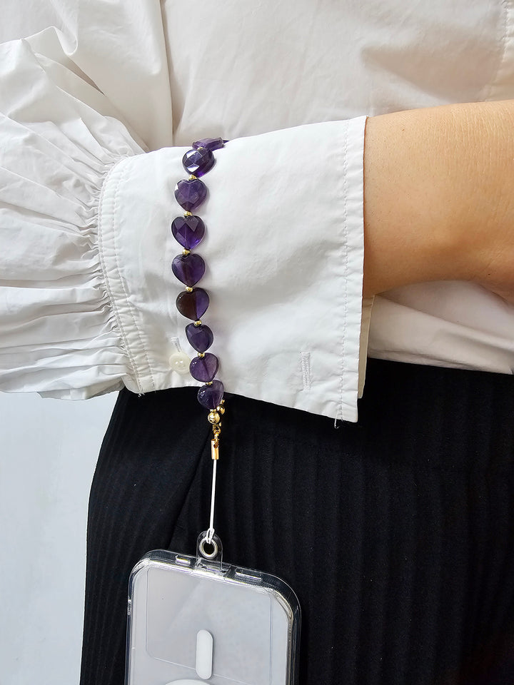Additionally, amethyst is often associated with richness, symbolizing wealth and prosperity. This makes the phone strap not only a fashionable accessory but also a talisman for abundance.
