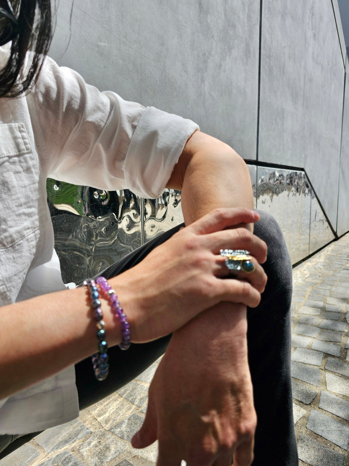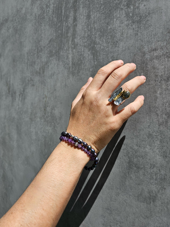 Amethyst is the birthstone for February and is believed to promote calmness, wisdom, and spiritual growth. This bracelet is perfect for layering with other bracelets, allowing you to create a personalized stack that reflects your unique style. Whether worn on its own or combined with other accessories, the amethyst flexible bracelet makes a versatile addition to any wardrobe, embodying both elegance and strength while offering the benefits of this meaningful stone.