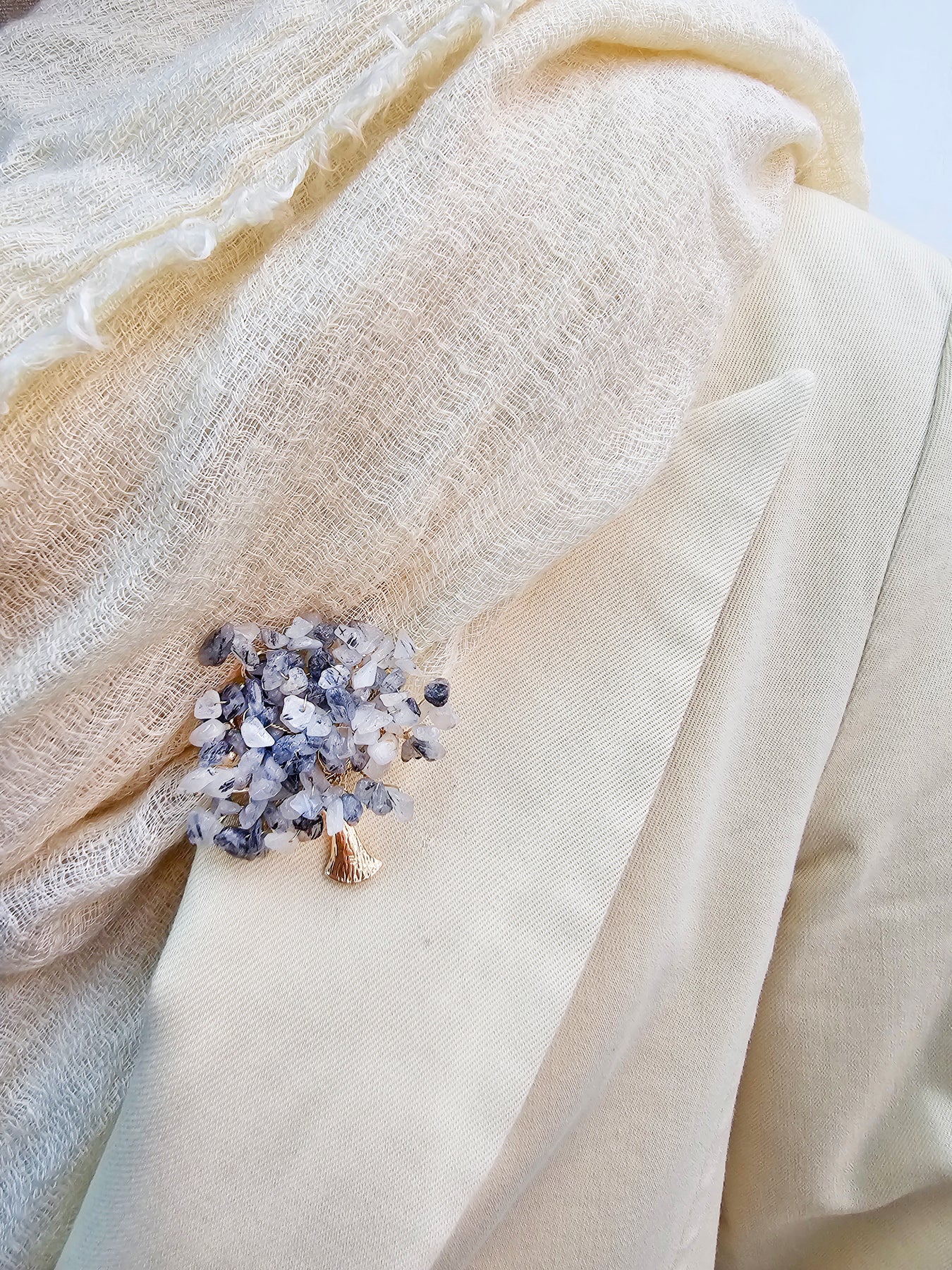 Black rutilated quartz is not only visually captivating; it’s also believed to enhance clarity and provide a protective energy. Wearing this brooch can promote emotional healing and help you stay grounded while embracing your individuality.