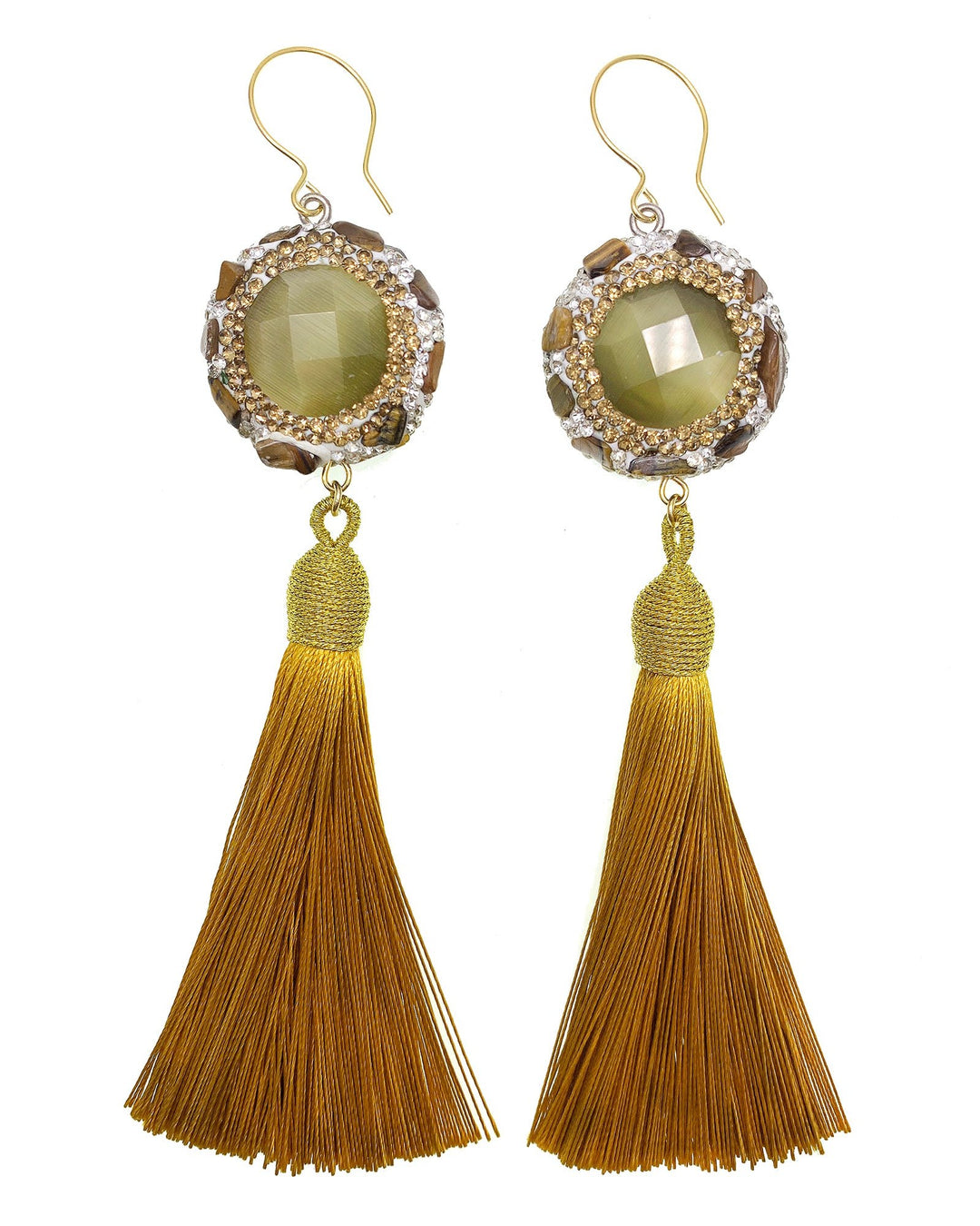 Opal And Brown Tiger Eye Rhinestone With Tassel Earrings GE007