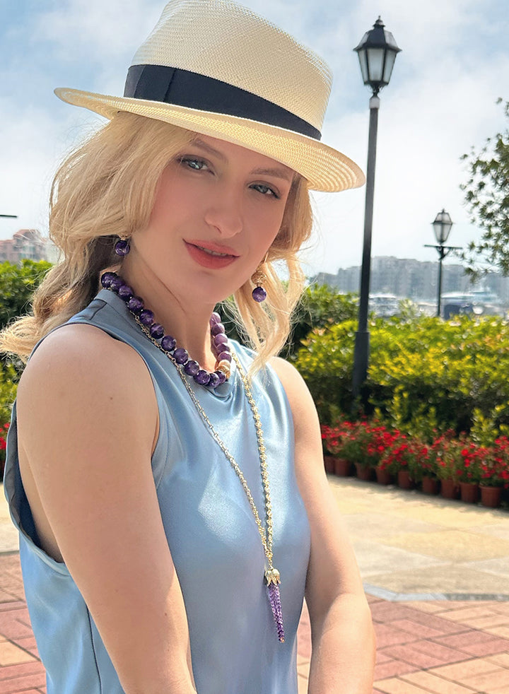 This beautiful piece features a stunning large Baroque pearl complemented by a faceted Amethyst stone. The organic and irregular shape of the Baroque pearl is enhanced by its exquisite luster and unique texture, making the necklace truly one-of-a-kind. The faceted Amethyst stone adds a touch of glamour and sophistication to the necklace, while its purple hue brings a pop of color to any outfit. The necklace is held together with a gold-filled clasp, ensuring both durability and elegance. Perfect for formal occasions or as an everyday accessory, this necklace is a must-have for any jewelry collection. This is beautiful and timeless gift which will be contained in a nice jewelry box with well packed.