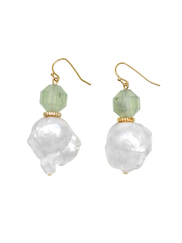 Prehnite with Baroque Pearl Hook Earrings EE002 - FARRA