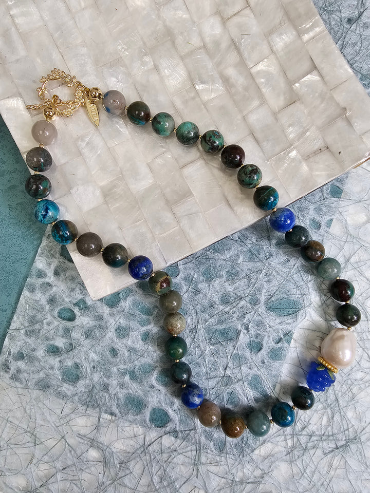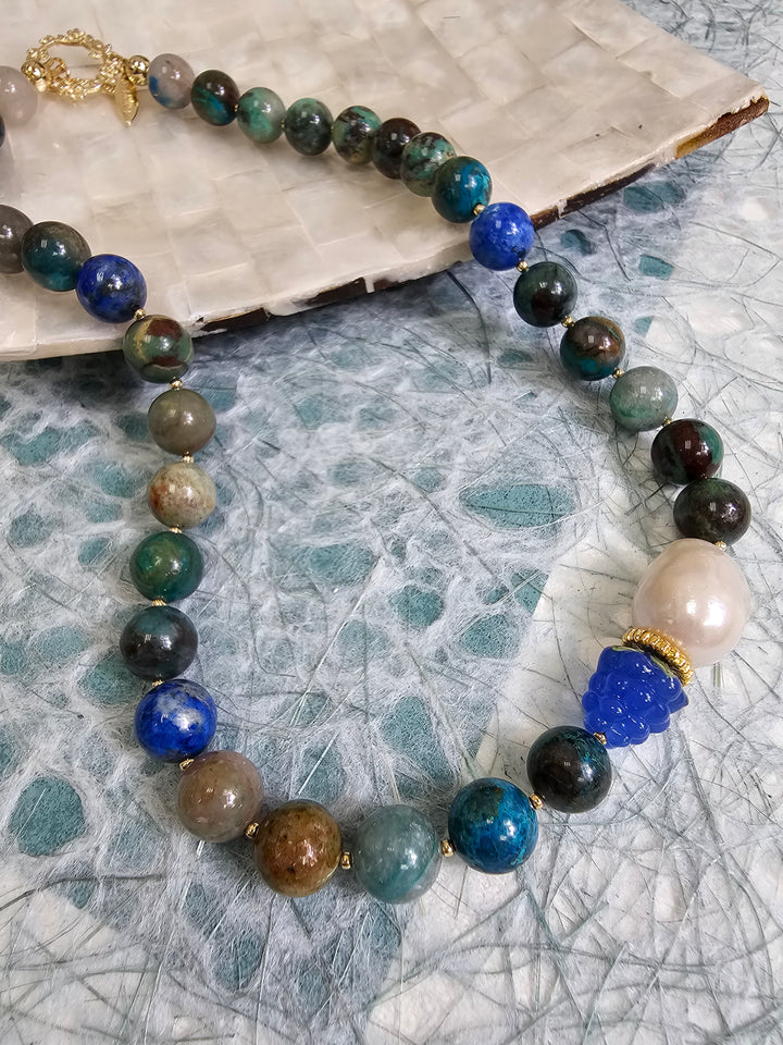 Phoenix Lapis With Baroque Pearl And Blue Raspberry Necklace NN031
