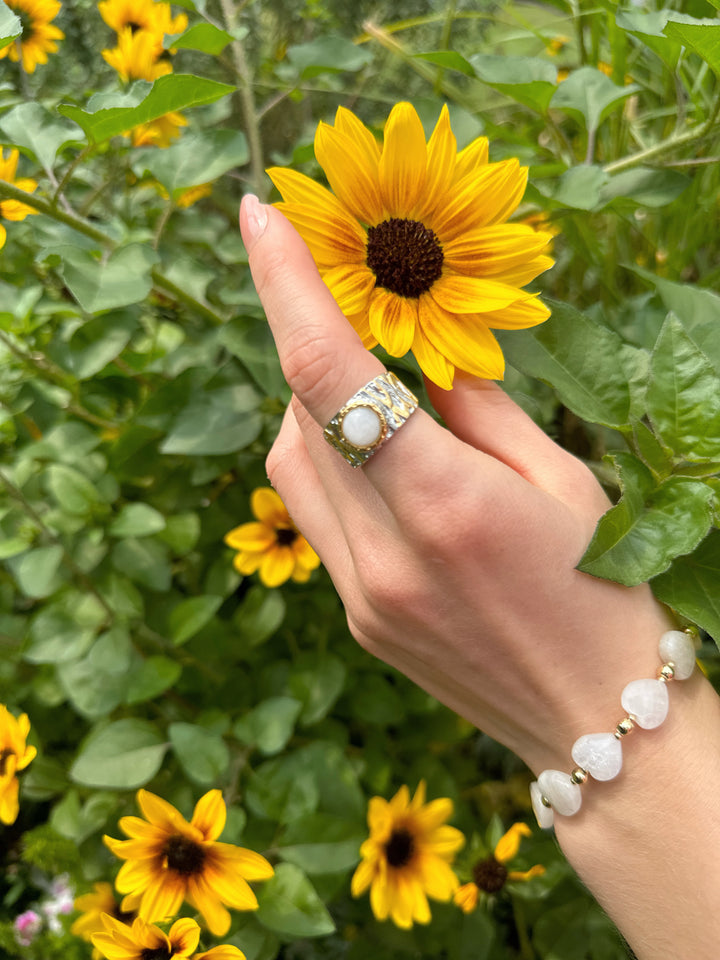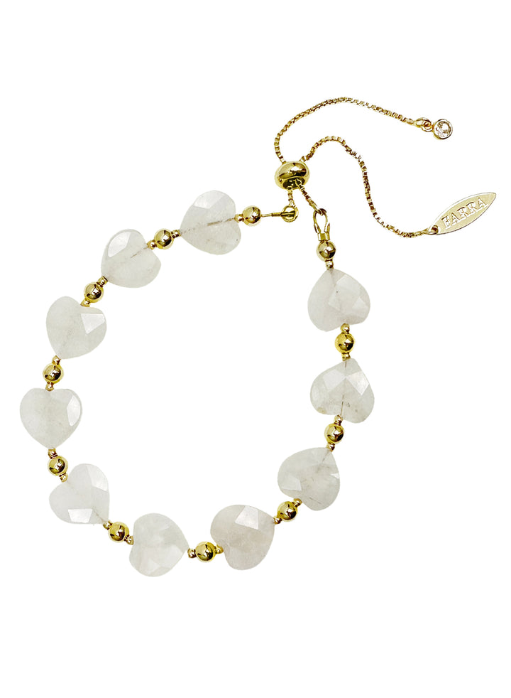 The heart-shaped moonstone is known for its ethereal and iridescent glow. Each moonstone is carefully selected for its quality and unique play of colors, ranging from shimmering blues and purples to soft pinks and whites. The heart shape adds a touch of romance and symbolism to the bracelet, making it a perfect gift for a loved one or a meaningful addition to your own collection.