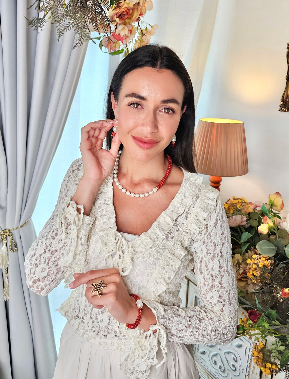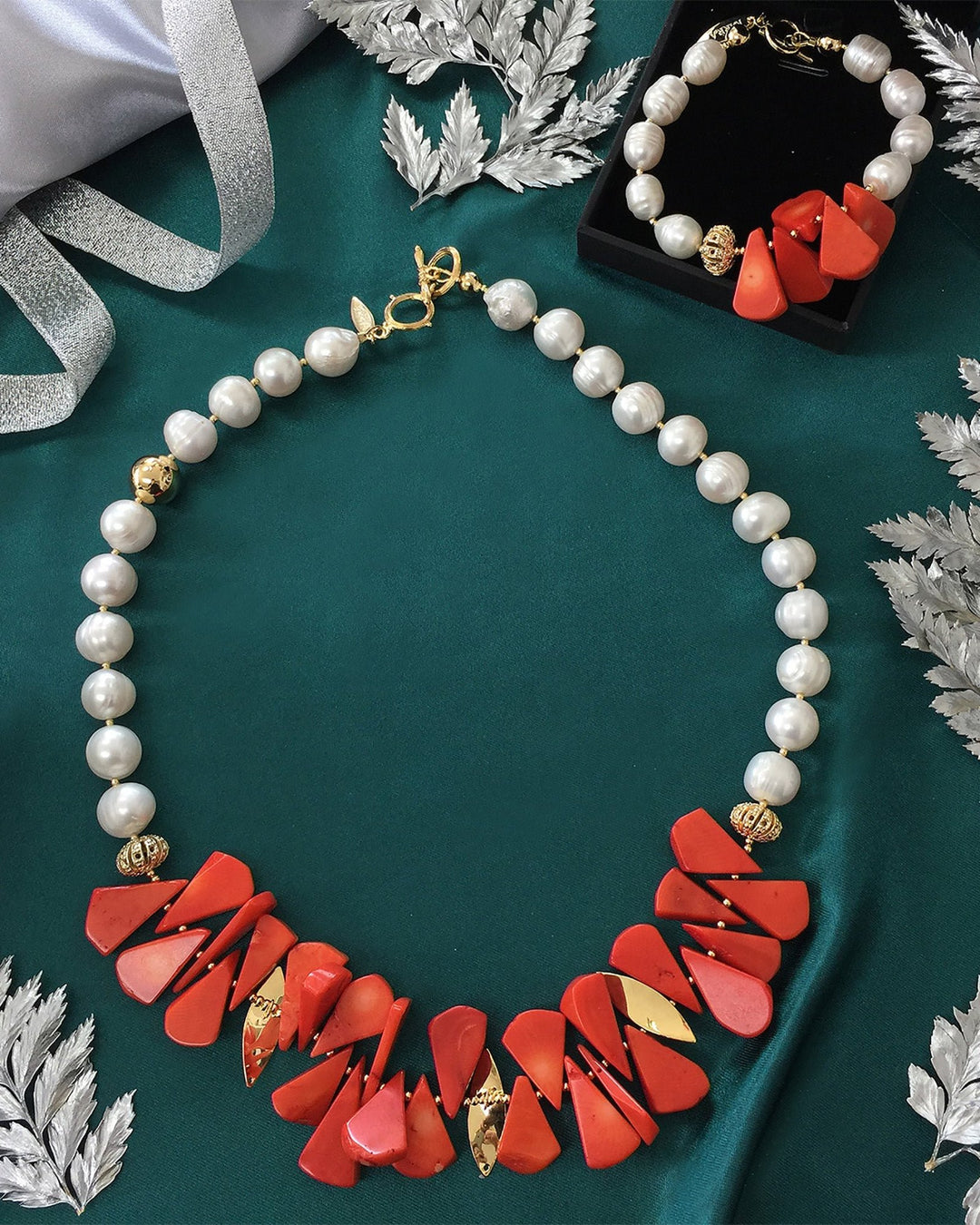 A unique and striking variety of coral, is renowned for its distinctive bamboo-like appearance and rich red to orange hues. Sourced primarily from deep ocean waters around the world, including the Pacific and Indian Oceans, bamboo coral has been used for centuries in jewelry and decorative items. Known for its protective and grounding properties, bamboo coral is believed to enhance emotional balance, promote inner peace, and provide strength during times of stress and adversity. This exotic gemstone is commonly crafted into jewelry such as coral necklaces, bracelets, and earrings, adding an organic and vibrant touch to any ensemble.