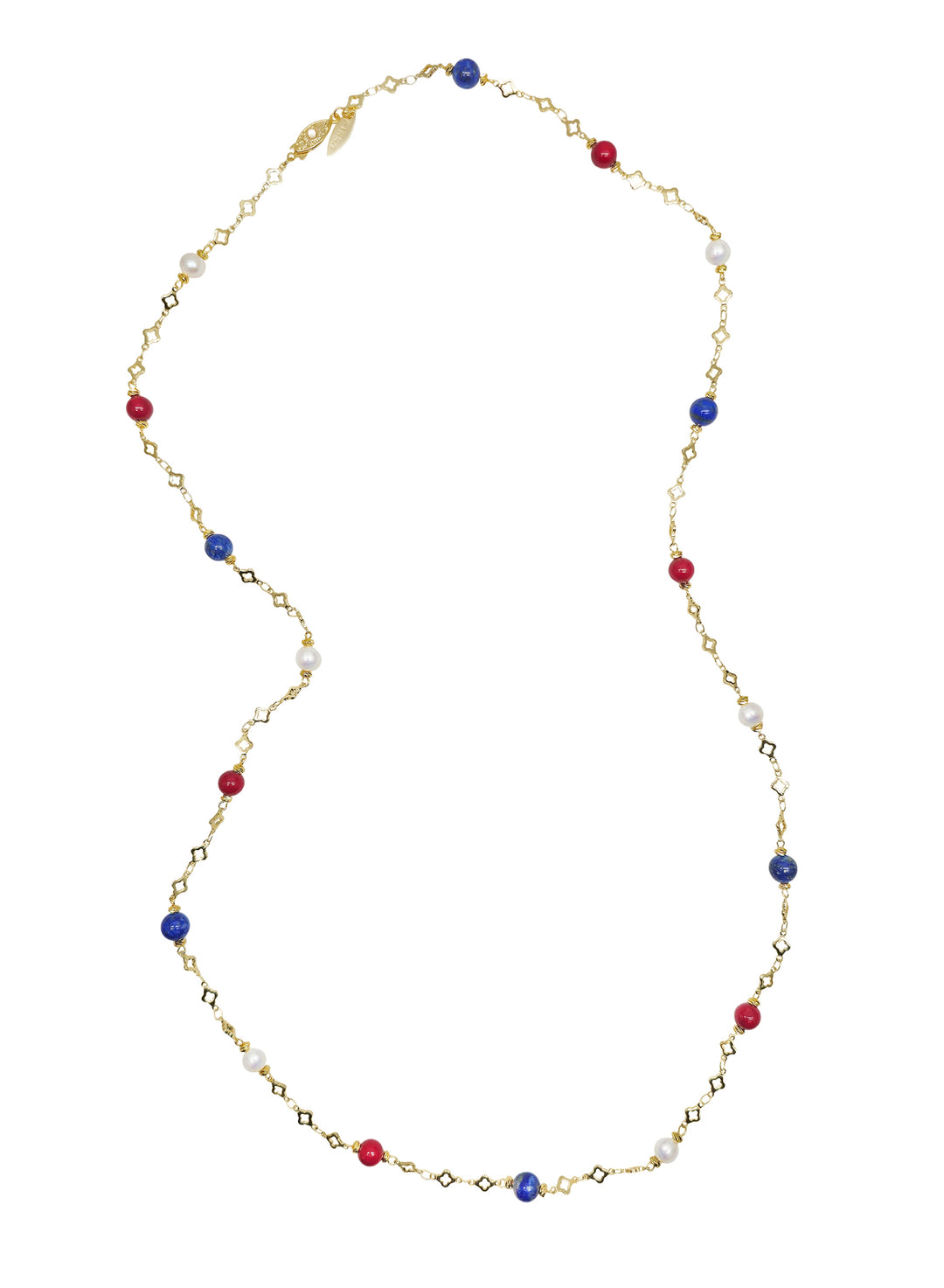 Red Bamboo Coral And Blue Lapis Long Station Necklace RN030
