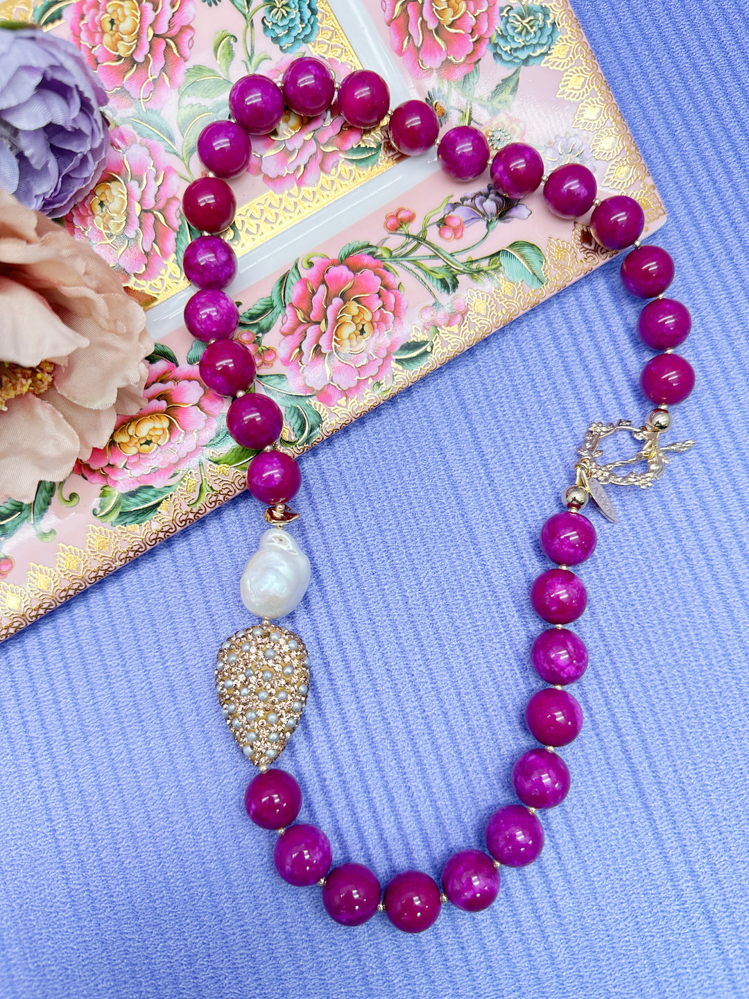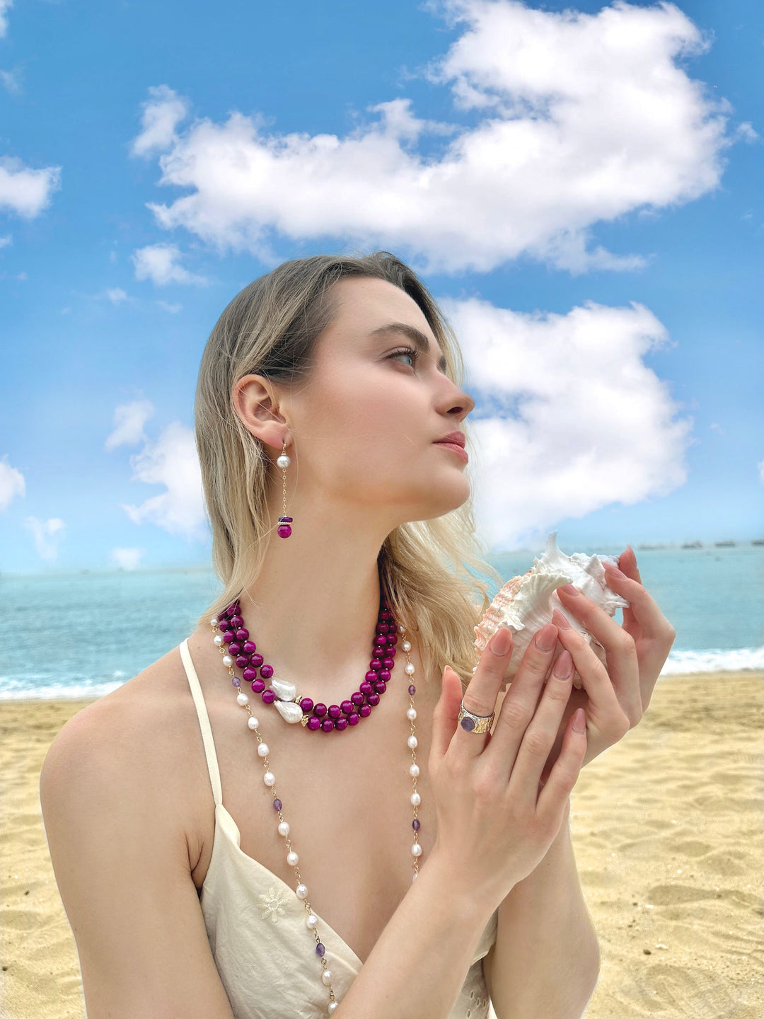 Sugilite jewelry is highly prized for its exquisite and vibrant purple hues, ranging from deep magenta to lavender, often accentuated by its waxy luster. Originating from rare deposits primarily in South Africa, as well as Japan and Canada, sugilite's unique coloration and rarity make it a coveted gemstone in the world of fine jewelry. Crafted into stunning rings, necklaces, bracelets, and earrings, sugilite pieces are not only visually captivating but also carry significant metaphysical properties. Believed to aid in spiritual growth, protection, and emotional balance, sugilite is often associated with the crown chakra, enhancing spiritual awareness and connection. Whether set in gold, silver, or other precious metals, sugilite jewelry is cherished for both its aesthetic beauty and its profound spiritual significance, making it a treasured addition to any collection.