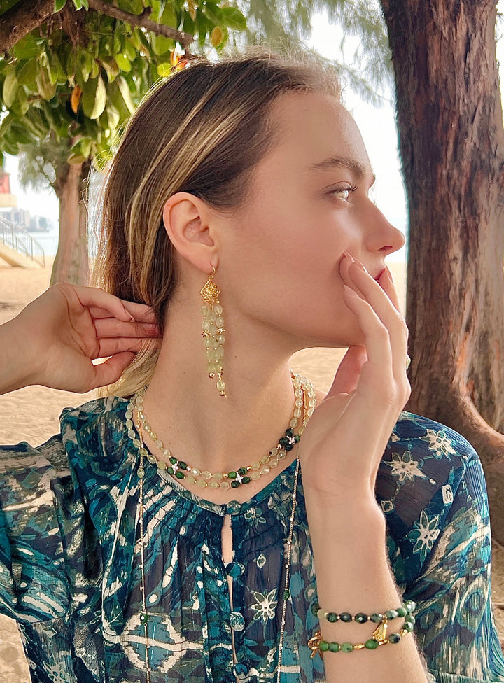 Materials: natural zoisite, natural prehnite, 14K gold plated brass