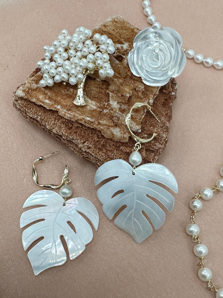 The brooch features a handcrafted shell shaped and textured to resemble the graceful petals of the camellia flower. Capturing the intricate details and natural contours of the flower. The shells adds a touch of organic beauty and uniqueness to the brooch, making it a truly eye-catching and distinctive piece.