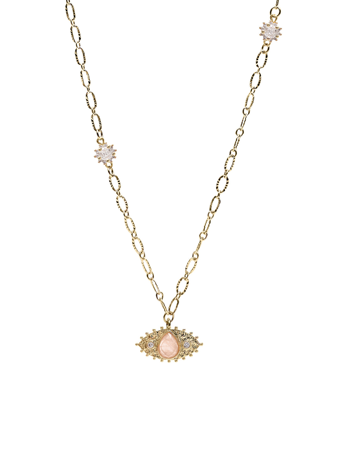 Rose Quartz Turkish Devil Eye Pendant Chain Necklace RN017