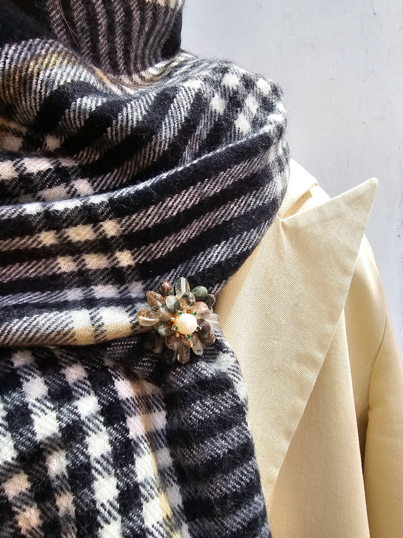 This versatile brooch is perfect for adding a sophisticated touch to any outfit, whether worn on a jacket, scarf, or hat. Its artistic design and natural elements make it a striking statement piece that reflects individuality and craftsmanship. The Black Phantom Quartz Floral Brooch is not just an accessory; it's a celebration of beauty and style, sure to attract attention and admiration.