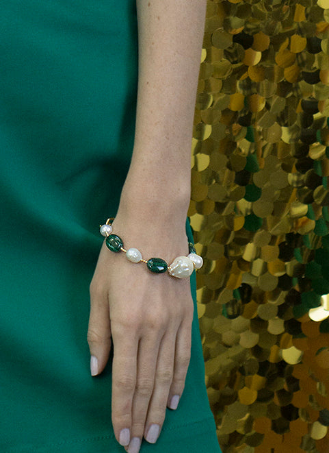 Malachite & Baroque Pearls With Edison Pearls Bracelet CB014 - FARRA