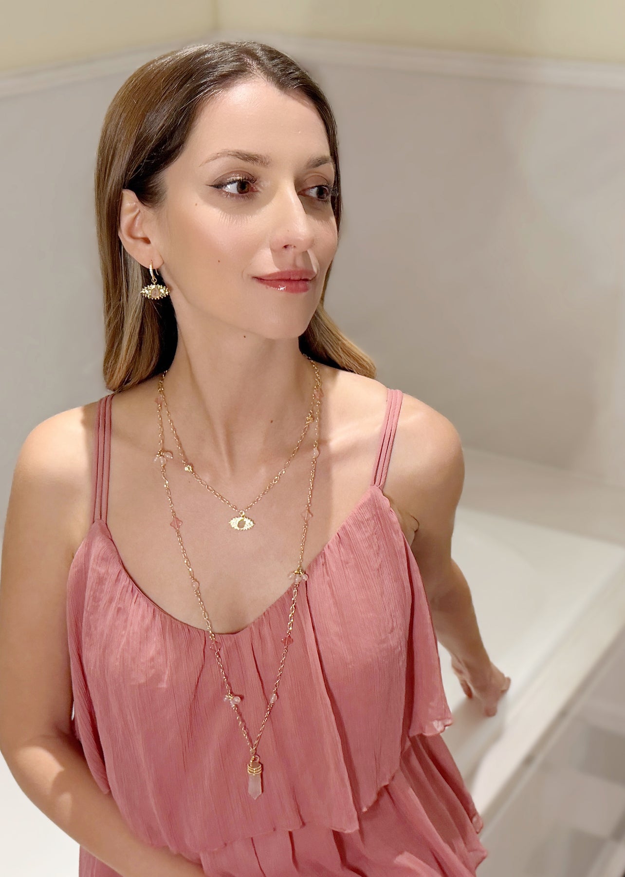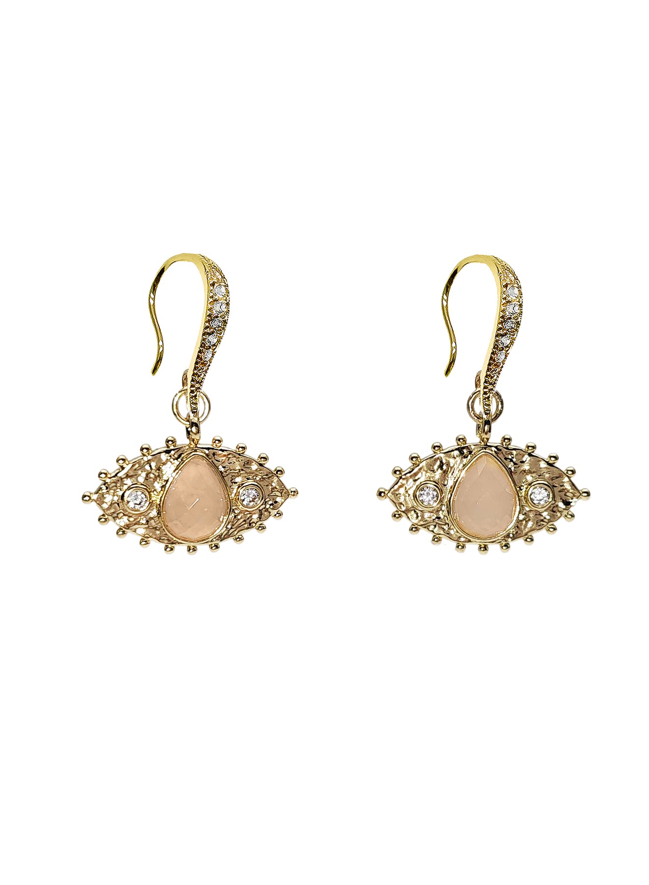 Evil Eye Adorned Rose Quartz Stone Earrings RE015