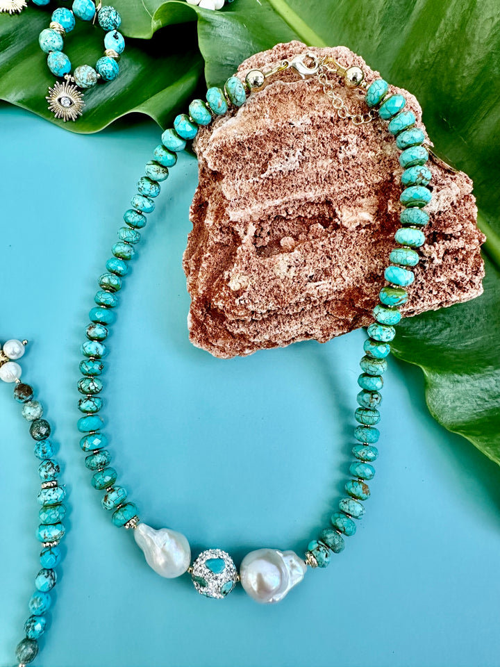Turquoise With Baroque Pearls Statement Necklace JN057