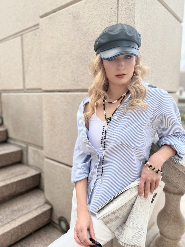 This handmade necklace is tube black agate with freshwater pearls with Japan golden plated findings.It's simple but sophisticated which can be worn for daily life or any occasion. Pair with Farra agate or freshwater pearls earrings or bracelet looks stunning! This is also a nice gift for birthday. It will be contained in a nice jewelry box with well packed.