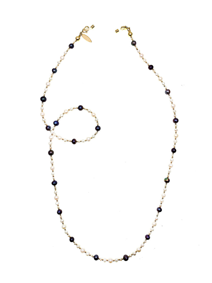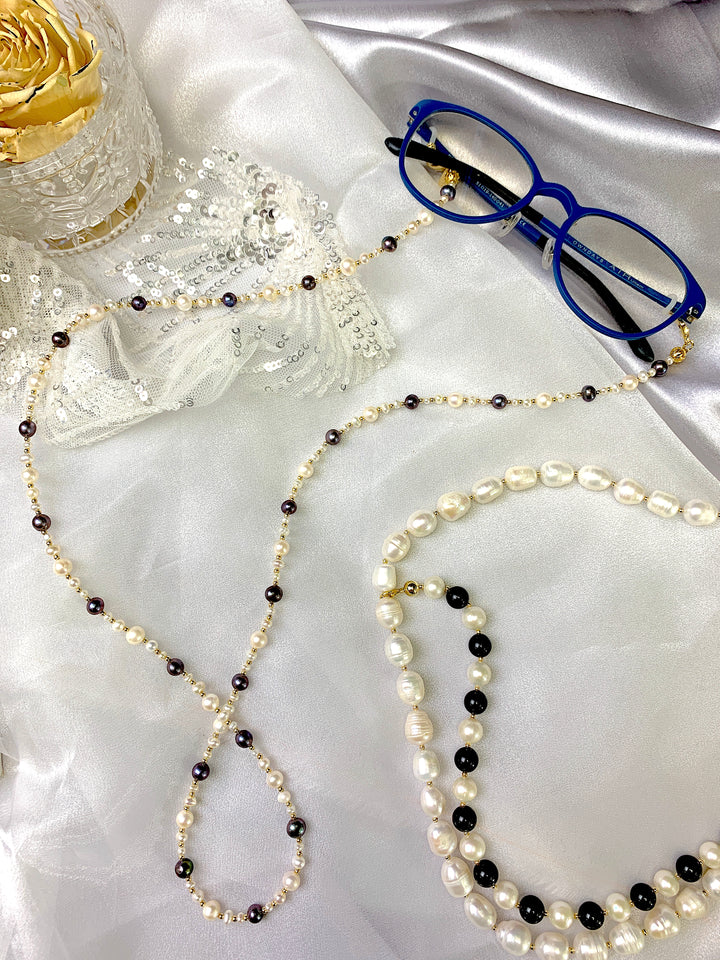 Freshwater Pearls With Black Pearls Glasses Chain FN020 - FARRA