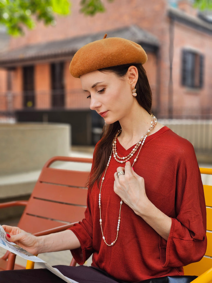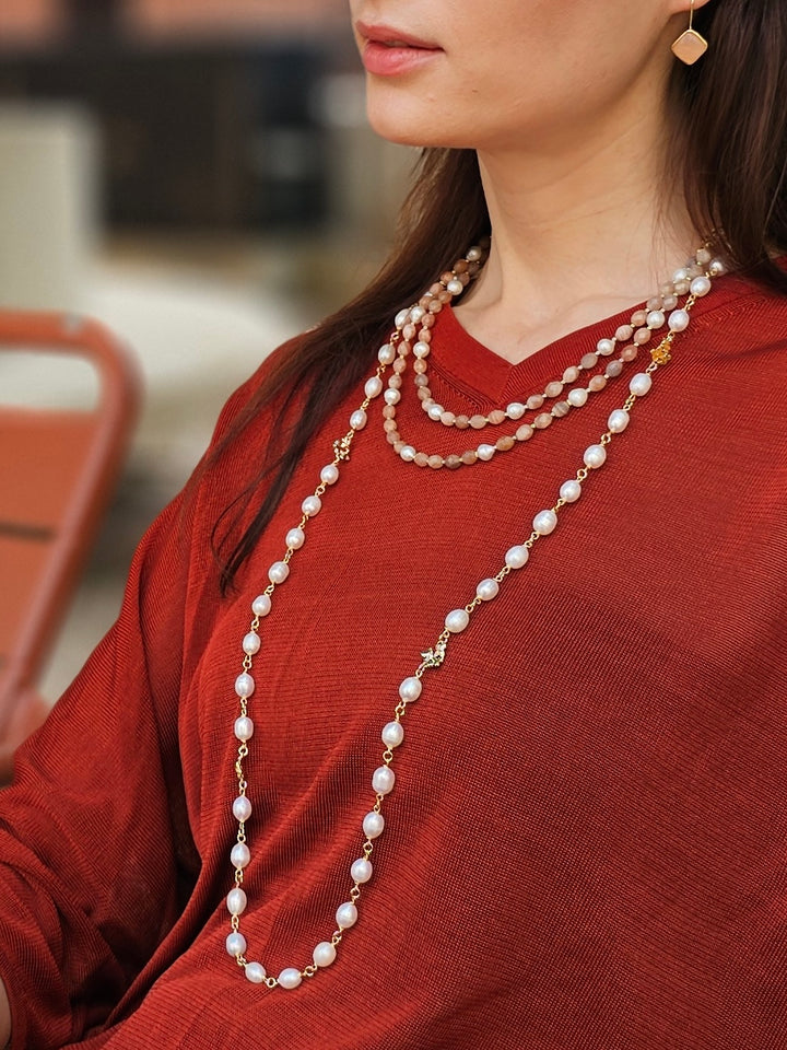 Materials: Natural orange moonstone, freshwater pearls, 14K gold plated brass