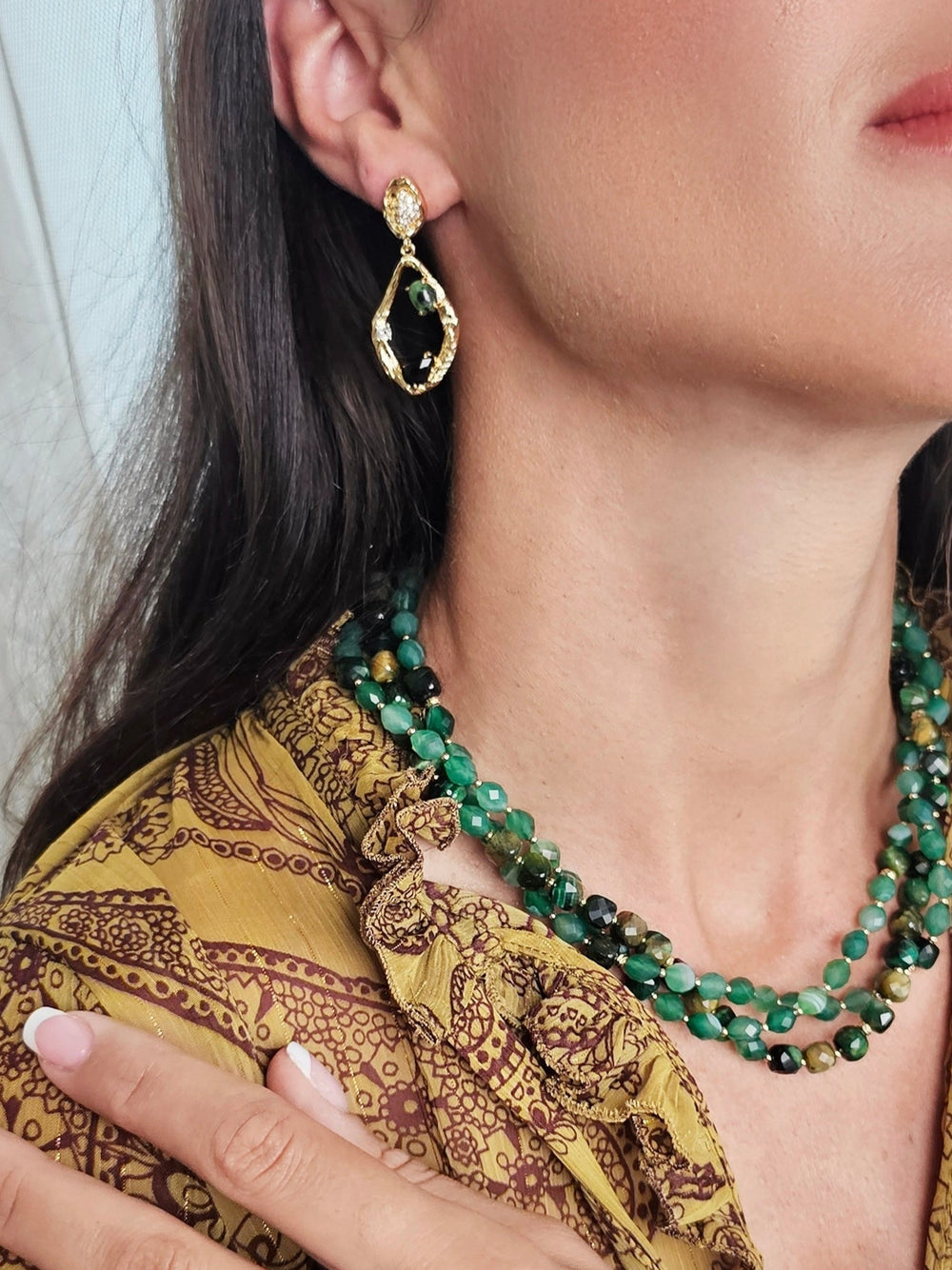 A captivating variety of chalcedony, is cherished for its wide range of colors and intricate banding patterns, making each piece unique. Sourced from diverse locations worldwide, including Brazil, Uruguay, India, and the United States, agate has been used since ancient times in amulets, seals, and decorative items, believed to offer protection and good fortune. Known as a "Stone of Stability," agate is thought to promote emotional balance, mental clarity, and inner strength. This versatile gemstone is often crafted into jewelry such as agate necklaces, and agate bracelets, agate earrings adding an earthy and distinctive touch to any outfit.
