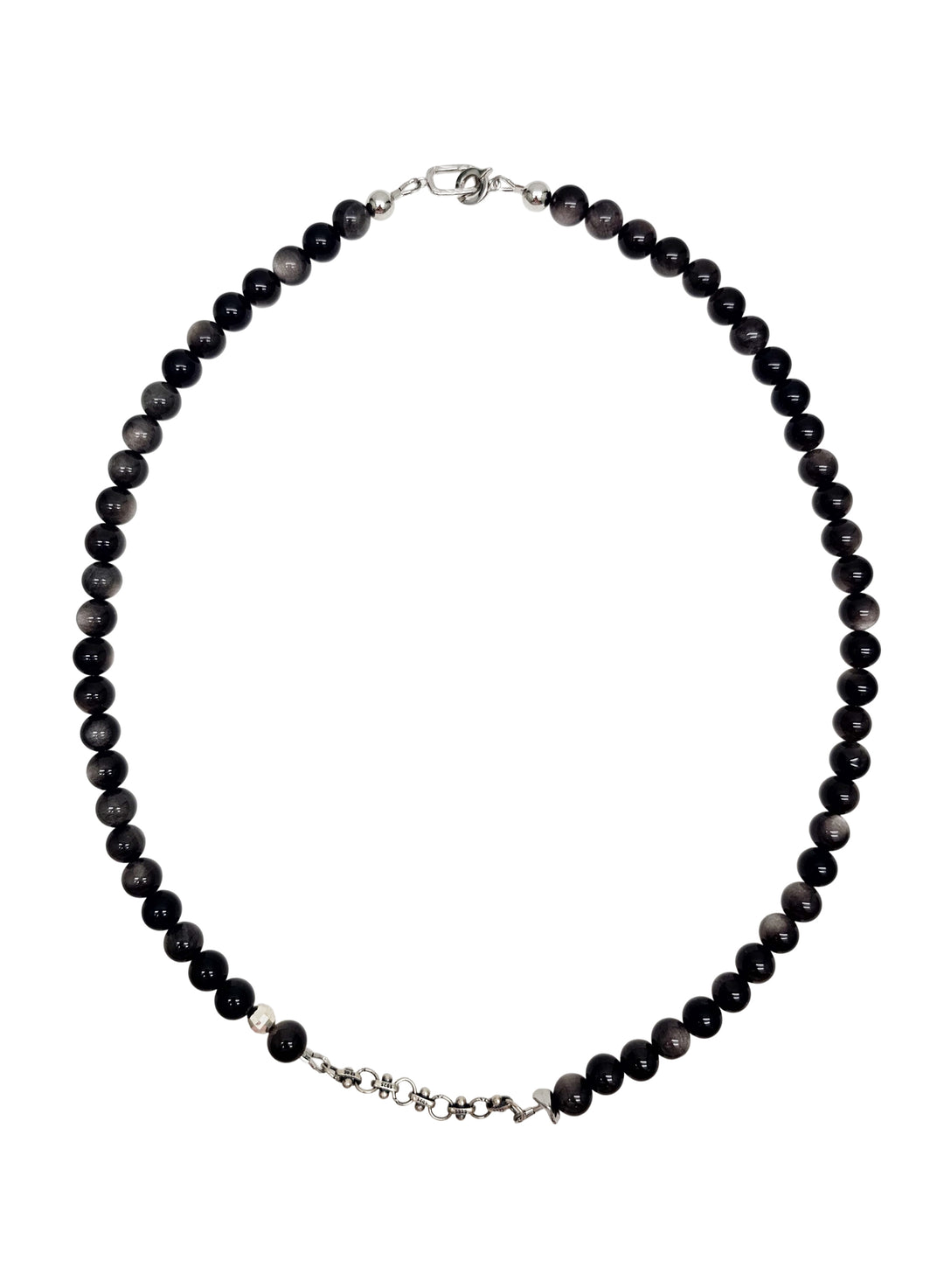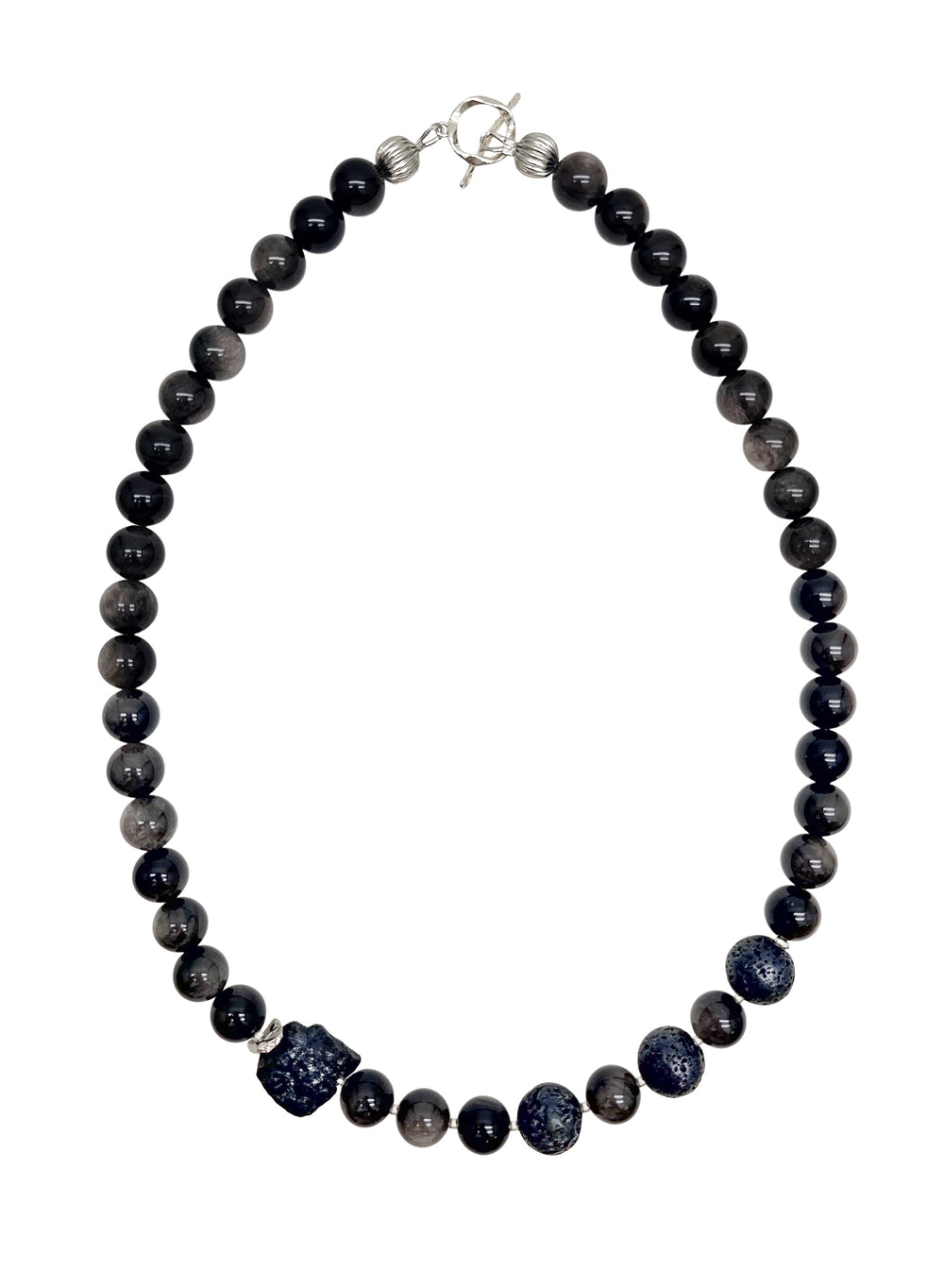 A naturally occurring volcanic glass formed from rapidly cooled lava, is revered for its glossy surface and powerful metaphysical properties. Sourced from volcanic regions worldwide, including Mexico, the United States, obsidian has a rich history, with ancient civilizations such as the Aztecs and Mayans using it to craft tools, weapons, and ceremonial objects. Known as the "Stone of Protection," obsidian is believed to shield against negativity, dispel emotional blockages, and reveal hidden truths. It is commonly used in jewelry, such as obsidian necklace, rings, pendants, and bracelets, adding a striking and mystical element to any ensemble.
