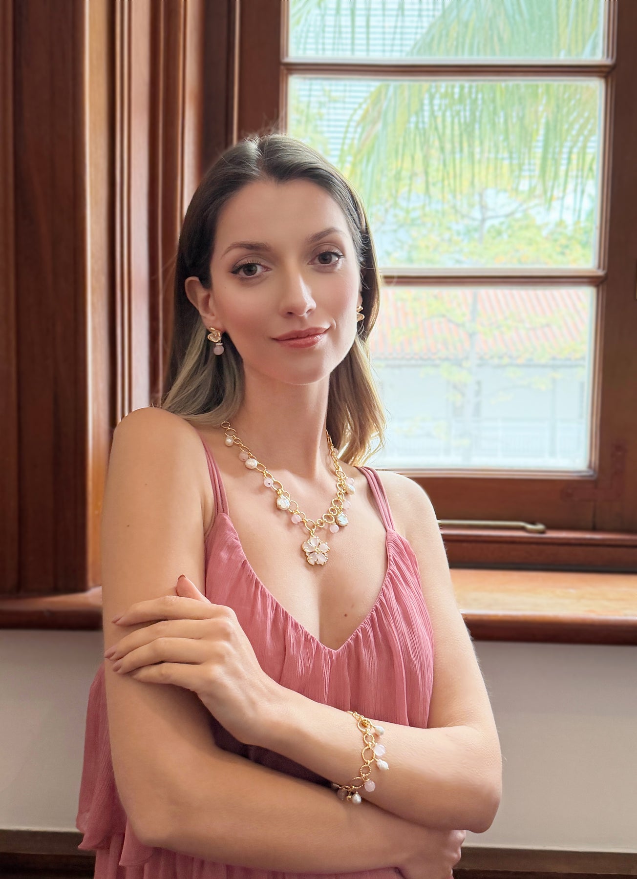 Drape this romantic statement piece over a pastel sundress or a crisp white blouse to instantly add a touch of feminine elegance and soft color to your look. You will love owning this jewelry staple because its masterful blend of classic pearls and a romantic floral design creates a versatile, timeless accessory that effortlessly radiates sophisticated charm.