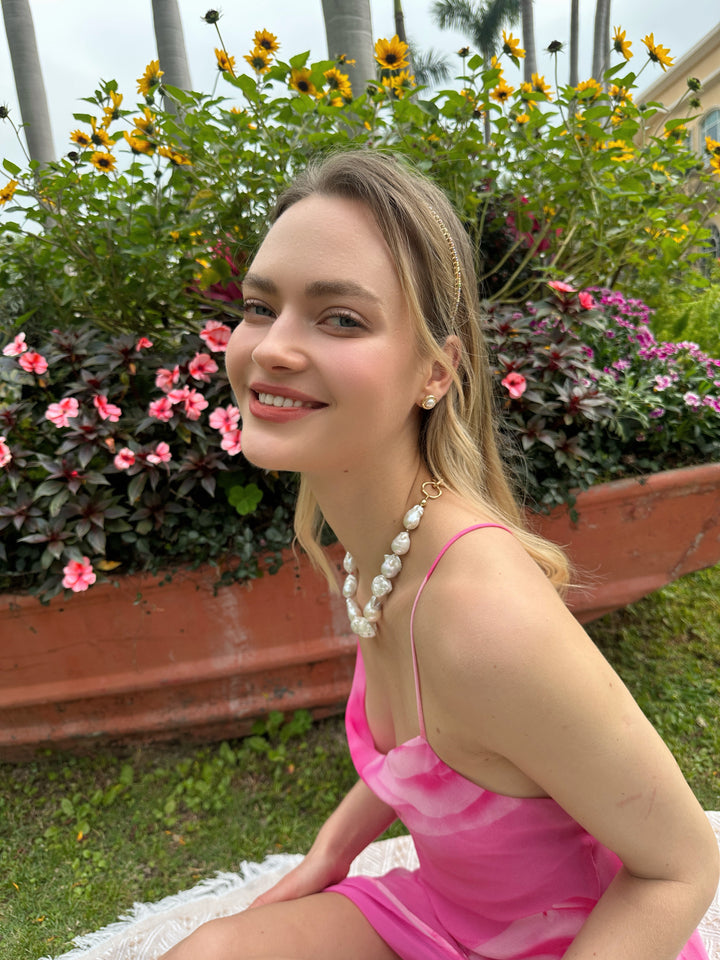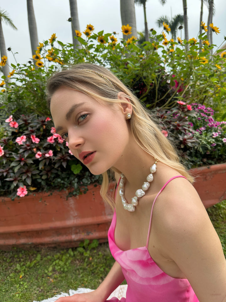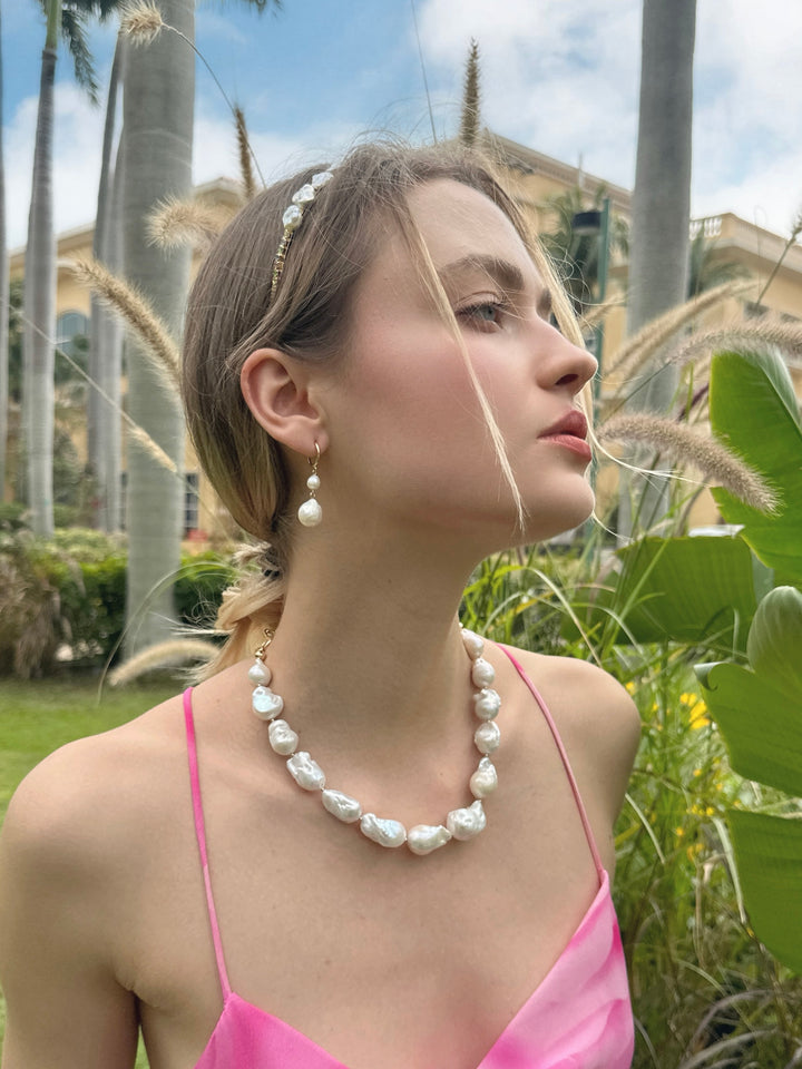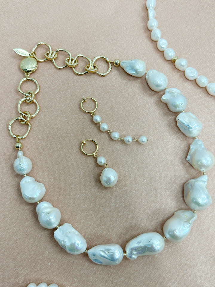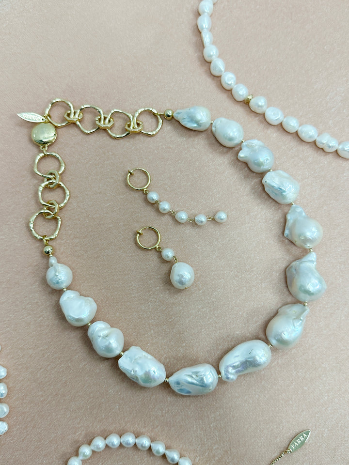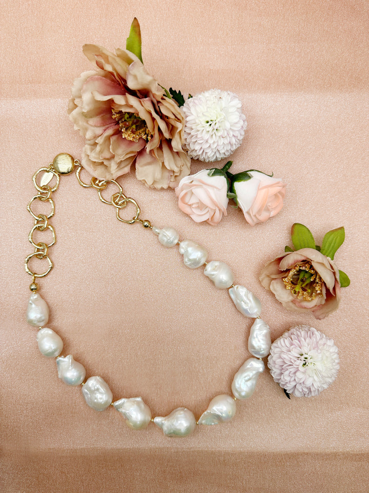 Baroque pearls are known for their irregular and organic shapes, making each pearl one-of-a-kind. The pearls used in this necklace are carefully selected for their lustrous surfaces, unique contours, and rich colors. Their irregularity adds a touch of natural beauty and uniqueness to the piece.