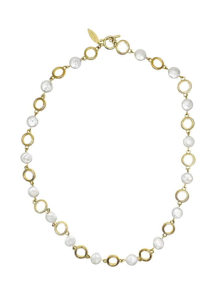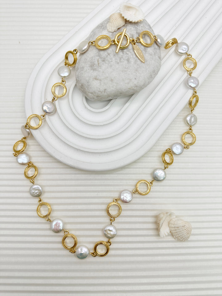 Gold Chain with Coin-Shaped Freshwater Pearls Necklace LN057 - FARRA