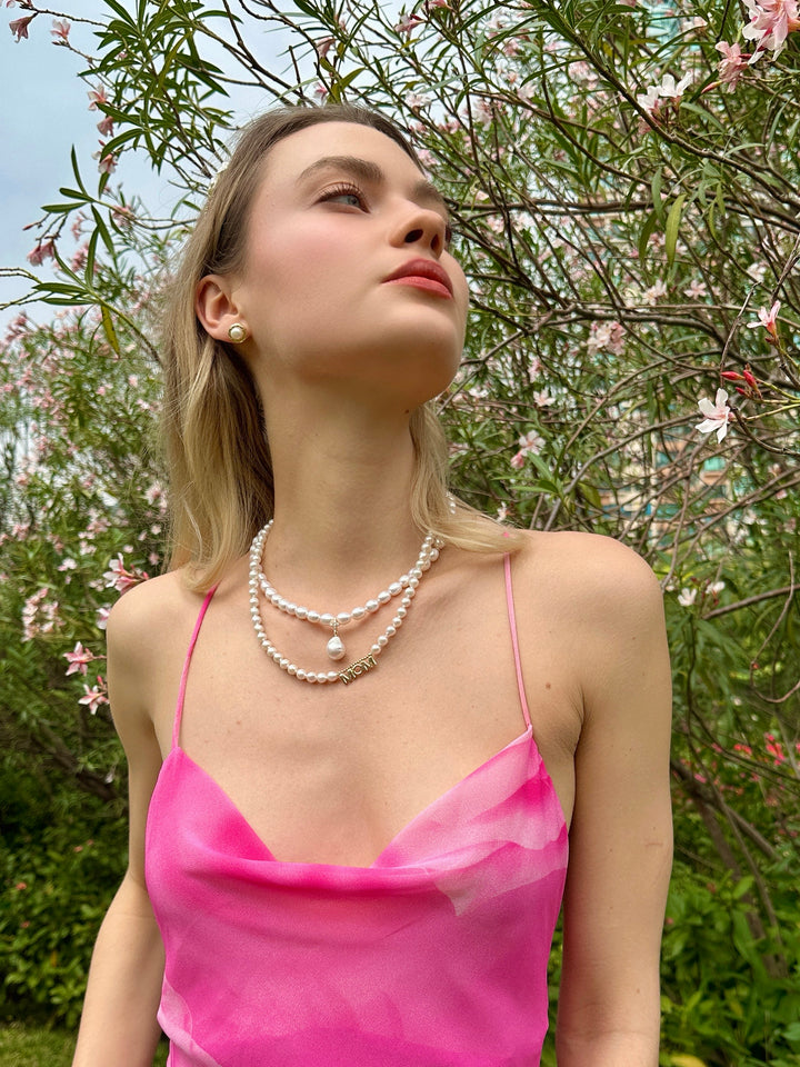 The necklace features lustrous freshwater pearls that carefully cultivated in the depths of a magnificent lake. Adding a touch of sophistication and beauty, the pearls' soft hues and smooth surfaces make them a classic choice that complements any style.