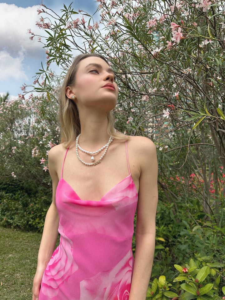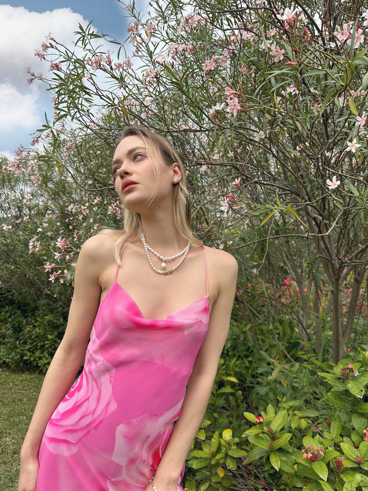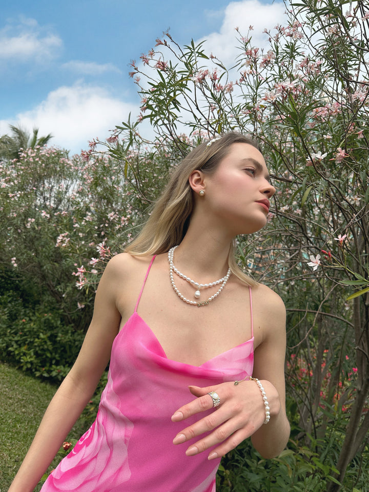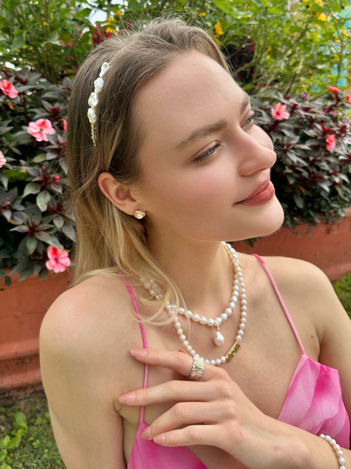 The necklace showcases a strand of freshwater pearls known for their natural beauty and alluring luster. Each pearl is carefully selected for its unique shape and glow, adding character and elegance to the necklace. Baroque pearls are renowned for their irregular and organic shapes, which give them a distinct and artistic appeal.