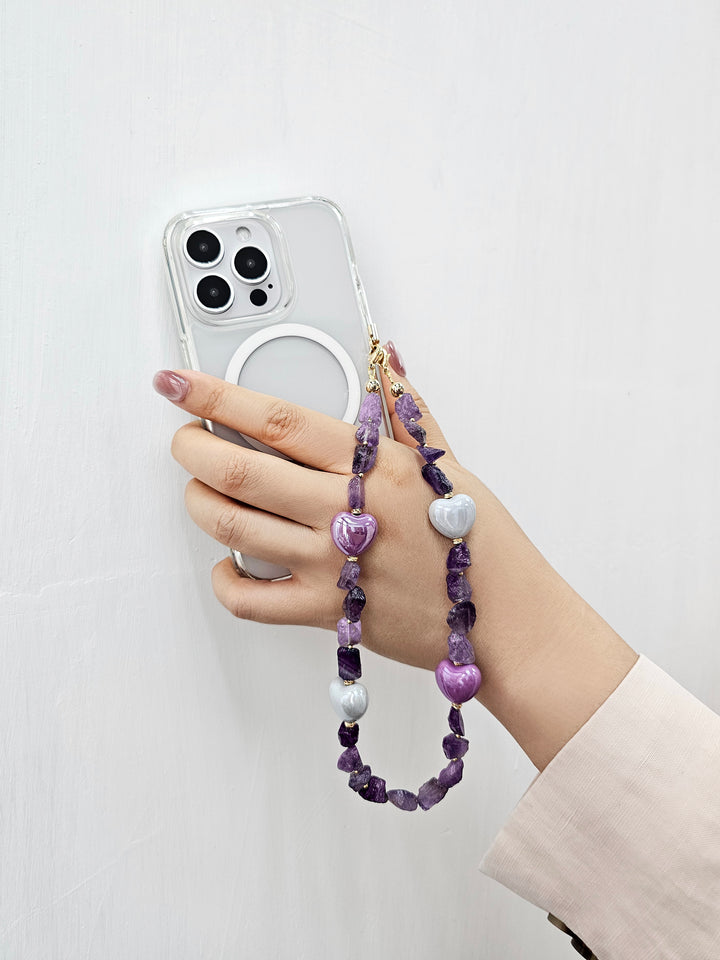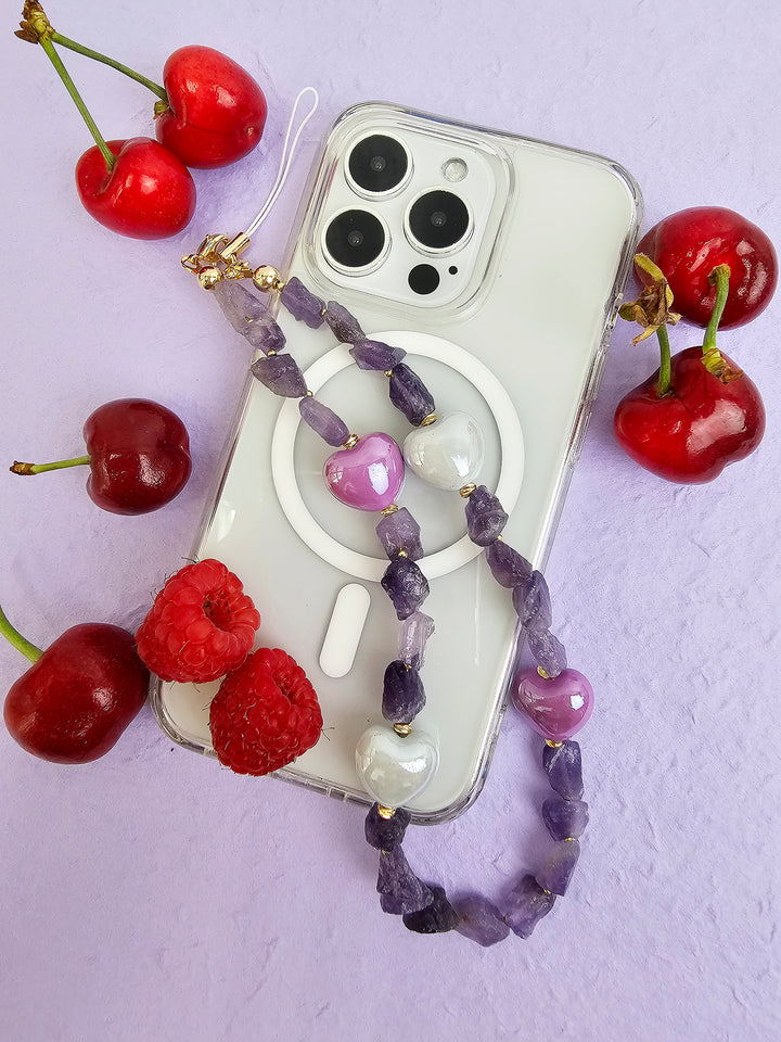 Irregular Amethyst With Hearts Gemstone Phone Strap PC059
