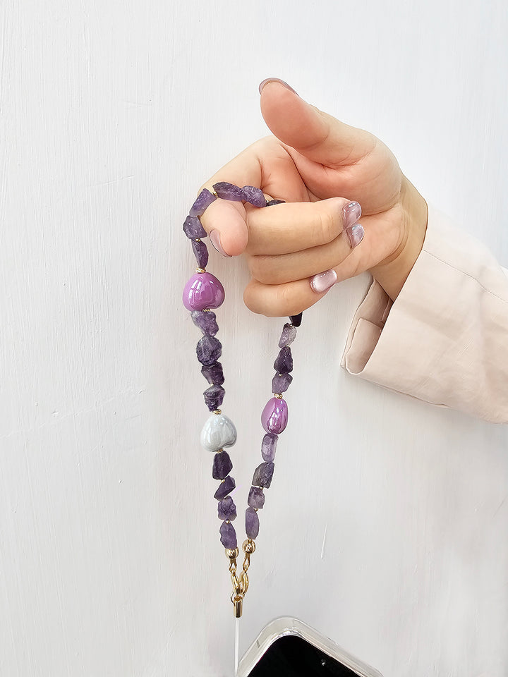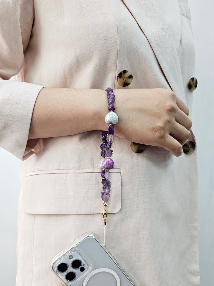 Amethyst is known for its calming and healing properties, believed to promote peace and balance. This phone strap not only enhances your device's appearance but also serves as a gentle reminder to embrace tranquility in your daily life. With a secure attachment for practical use, the phone strap beautifully merges style and purpose, making it a perfect accessory for any occasion.