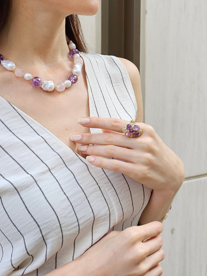 Amethyst Stones Statement Ring PR005