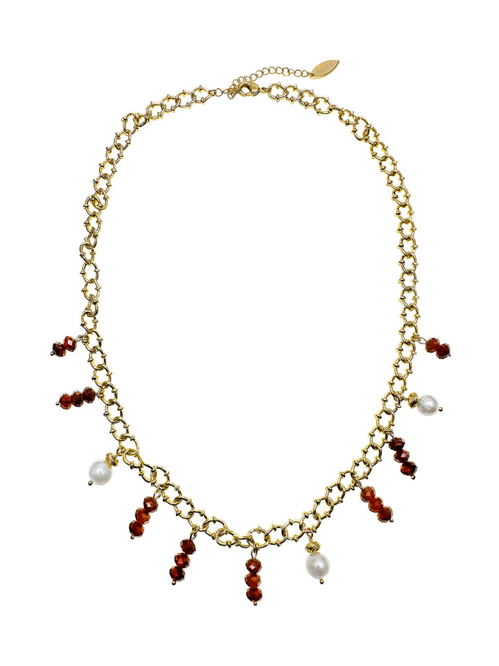 Faites une déclaration avec ce collier accrocheur de grenat orange et de perles d'eau douce. Fabriqué artisanalement avec des pierres d'origine éthique pour un style unique, il est parfait pour les occasions spéciales et peut être porté seul ou superposé à d'autres colliers en œil de tigre. Également associé à des boucles d'oreilles pendantes pour compléter votre look. Il sera contenu dans une jolie boîte à bijoux bien emballée.