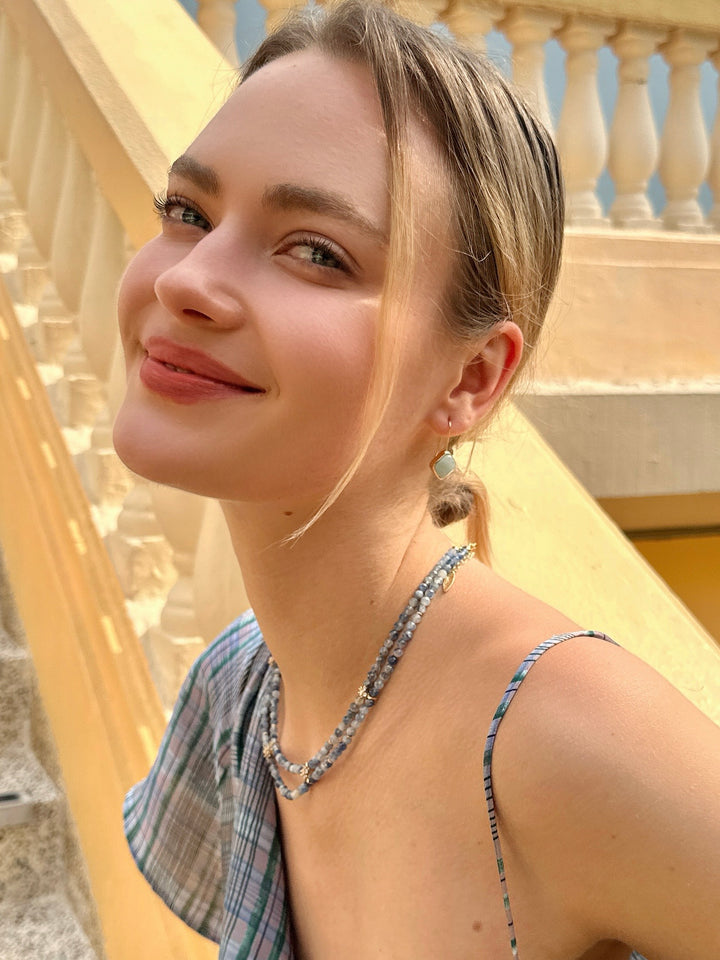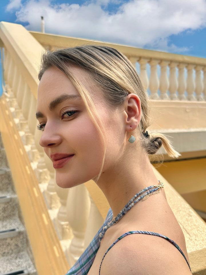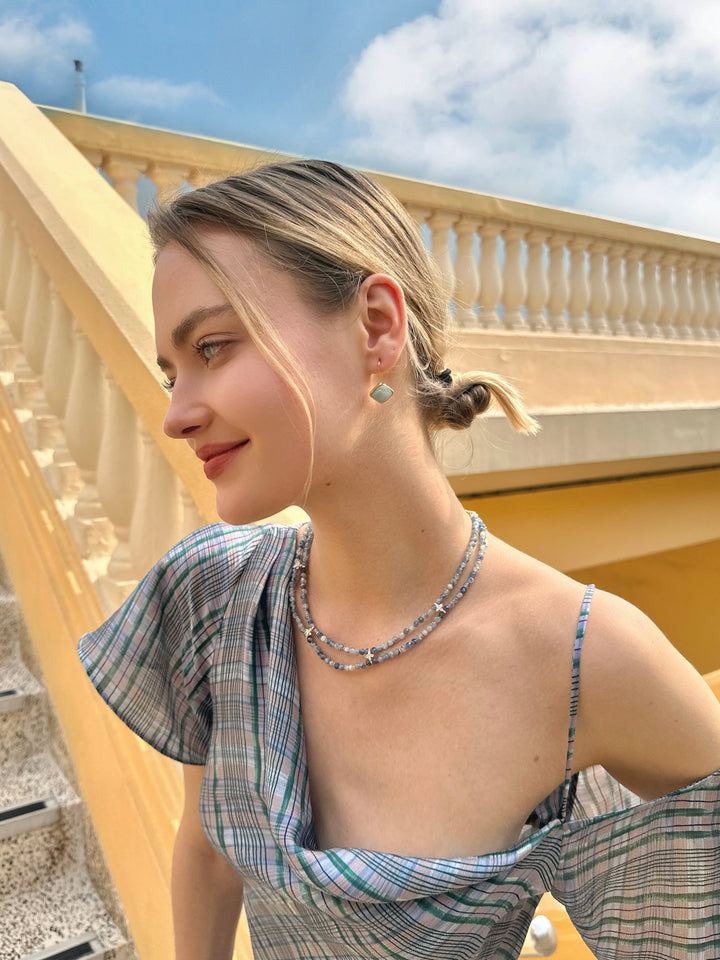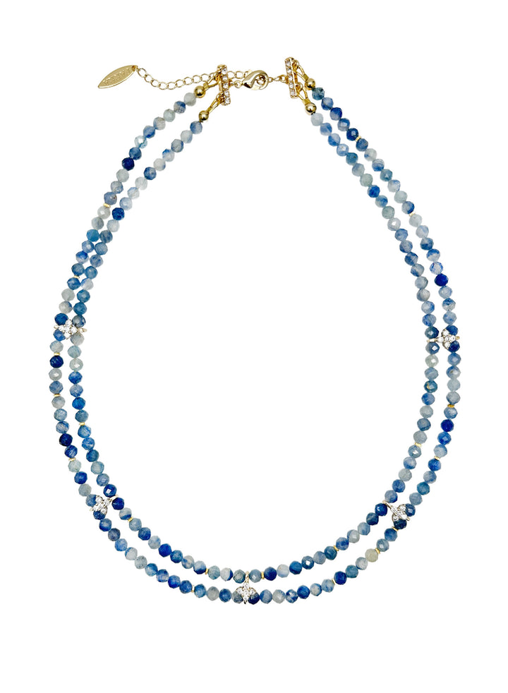 Materials: natural kyanite gemstone, zircon stone, 14K gold plated brass