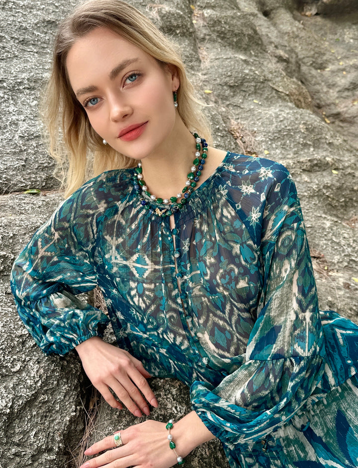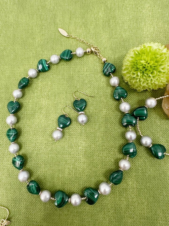 This necklace is not only a stunning accessory but also a heartfelt gesture. It makes a thoughtful gift for occasions such as birthdays, anniversaries, or to express love and appreciation to someone special in your life. Its unique combination of malachite and pearls serves as a reminder of the beauty found in nature and the depth of emotions shared between loved ones.