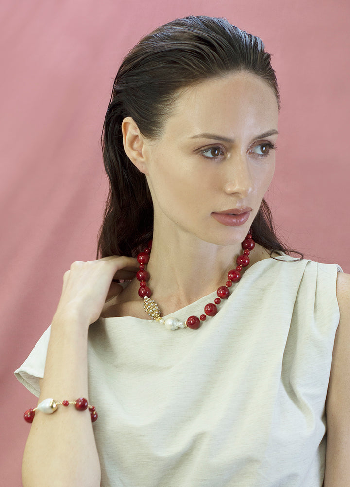 Ce collier court brillant est composé de coraux de bambou rouges avec des strass bordés de perles et des apprêts en laiton plaqué or baroque et japonais. C'est beau et élégant qui peut être porté de jour comme de nuit en toute occasion. Assorti à une combinaison, un chemisier ou un tricot, les deux sont magnifiques ! C'est également un très beau cadeau pour un anniversaire, un anniversaire ou un festival.