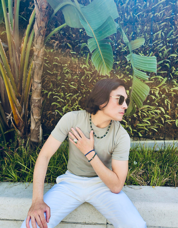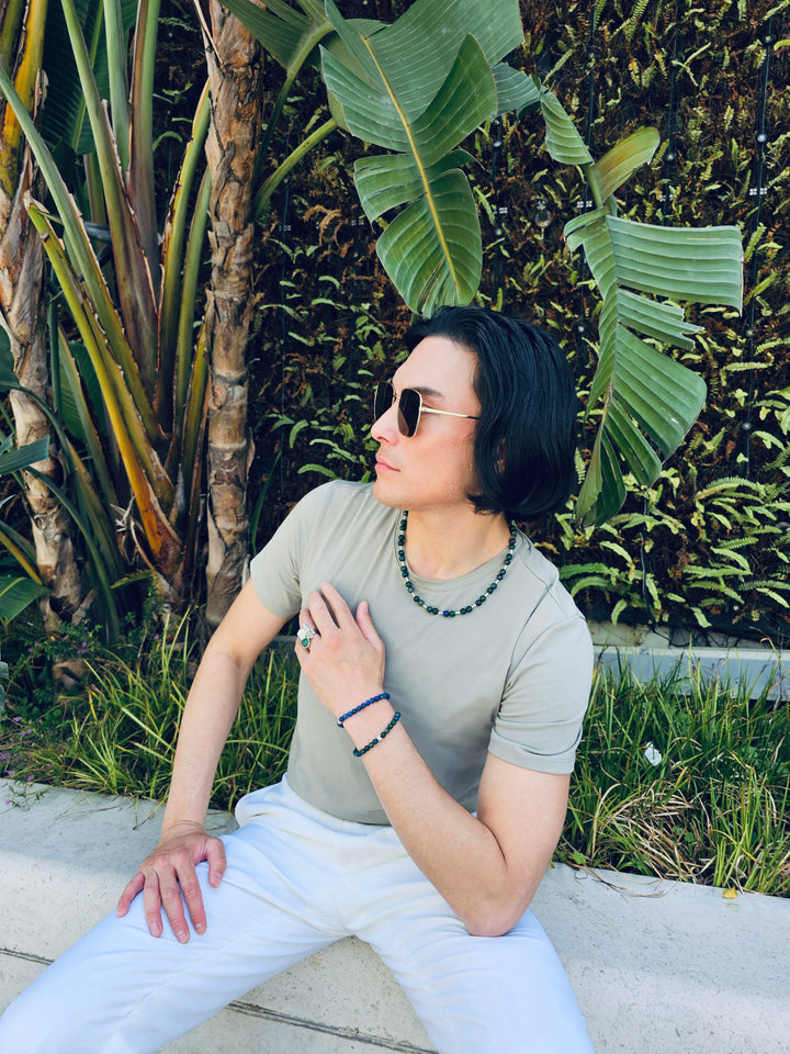 Ideal for both casual and formal occasions, this necklace offers versatility and style. Wear it alone for a bold statement or layer it with other accessories for a more eclectic vibe. Elevate your collection with the Phoenix Malachite with Sterling Silver Tube Men's Necklace, a piece that embodies elegance, individuality, and the transformative energy of malachite.