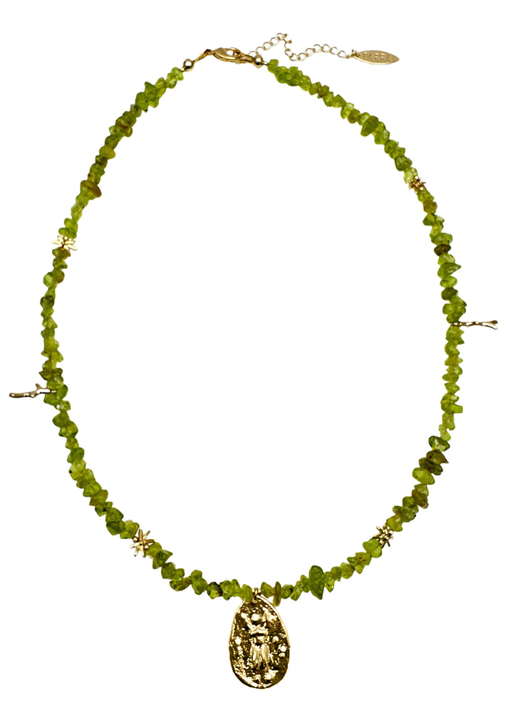 Necklace serves as a beautiful representation of your birth month, making it an excellent gift for August-born individuals. Its unique design and vibrant green color also make it a wonderful accessory to complement your summer outfits. Whether you're heading to a beach party, a music festival, or simply strolling along the shores, this necklace will add a touch of bohemian elegance to your ensemble.