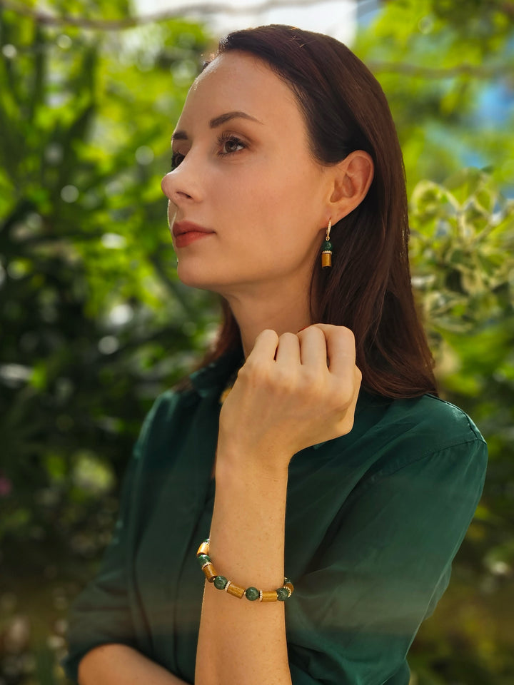 The energizing properties of the malachite are believed to promote balance and transformation, making these earrings not only stylish but also meaningful.