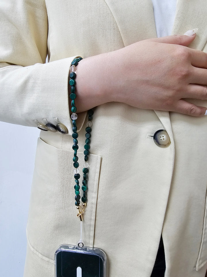 This stunning strap features the rich, vibrant hues of natural malachite, known for its protective and transformative properties. Malachite is believed to absorb negative energies and promote emotional healing, making it not only a beautiful accessory but also a meaningful one.