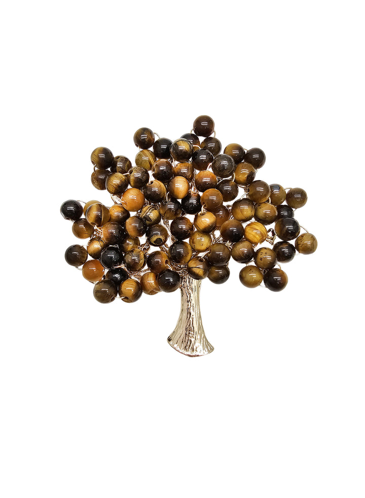 This handcrafted tree-shaped brooch is a stunning piece made from tiger-eye stones, showcasing their rich golden-brown hues and distinctive chatoyancy. The intricate design mimics the natural beauty of a tree, with the tiger-eye beads representing the leaves, each adding depth and texture. This brooch not only serves as a unique accessory but also symbolizes growth, strength, and resilience, reflecting the enduring qualities of nature.