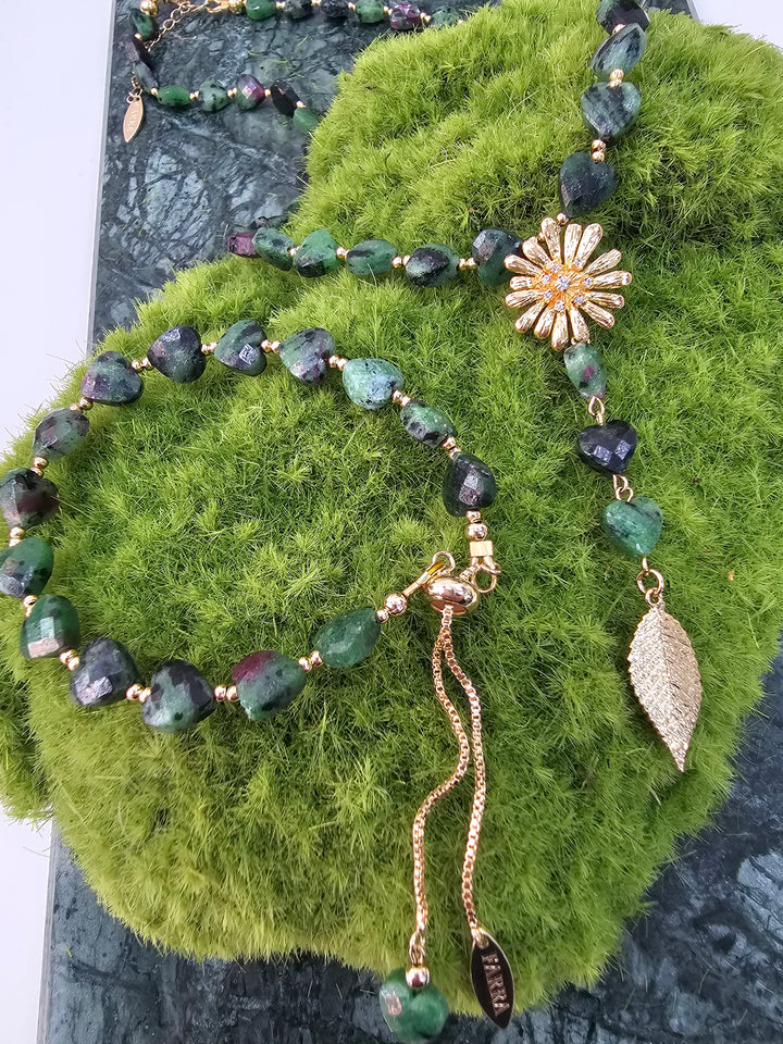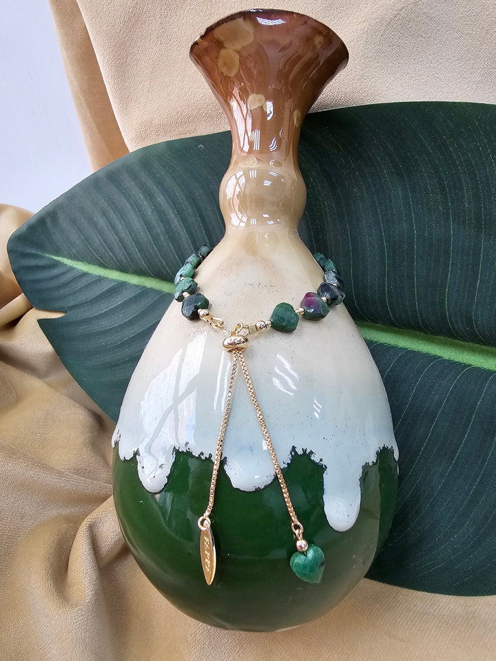 This enchanting heart-shaped zoisite gemstone adjustable bracelet is a beautiful expression of elegance and charm. The rich, vibrant hues of the zoisite, often featuring deep greens and subtle flecks of black or brown, create a striking visual appeal. Each gemstone is uniquely formed, ensuring that no two bracelets are alike, making this piece a truly special addition to your jewelry collection.