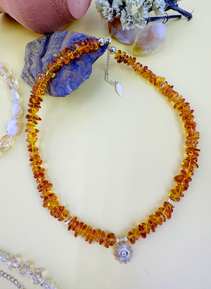 Cet élégant collier d'été, fabriqué avec de véritables pierres d'ambre, est l'accessoire parfait pour toute tenue de plage ou de journée ensoleillée. Associez-le à des boucles d'oreilles en ambre pour compléter votre look. C'est un cadeau parfait pour un anniversaire ou un festival qui sera contenu dans une jolie boîte à bijoux bien emballée.