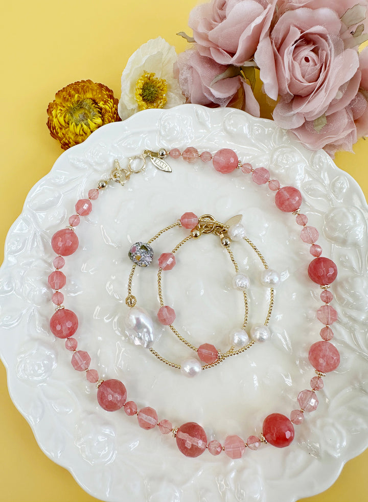 Ce collier accrocheur de perles de quartz pastèque est l'accessoire idéal pour ajouter une touche de féminité à n'importe quel look. C'est également un complément parfait pour une garden-party ensoleillée. Associez-le à des boucles d'oreilles ou à un bracelet pour créer votre propre style. C'est également un joli cadeau pour un anniversaire ou un anniversaire qui sera contenu dans une jolie boîte à bijoux bien emballée.