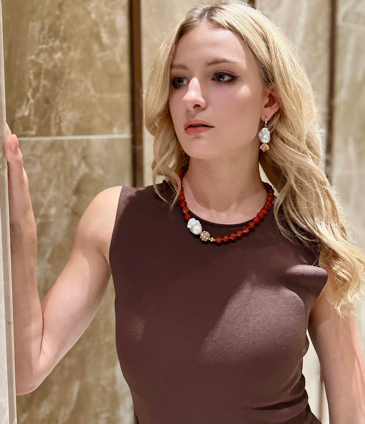 Ces boucles d'oreilles faites à la main sont composées de perles baroques, de quartz pastèque et d'apprêts en laiton plaqué or du Japon. Chaque perle baroque est belle et unique et peut être portée avec une robe midi, un chemisier ou un tricot en toute occasion. Associez-le au collier baroque Farra ou au collier de corail pour créer votre propre style. C'est également un très beau cadeau pour un anniversaire ou un anniversaire.
